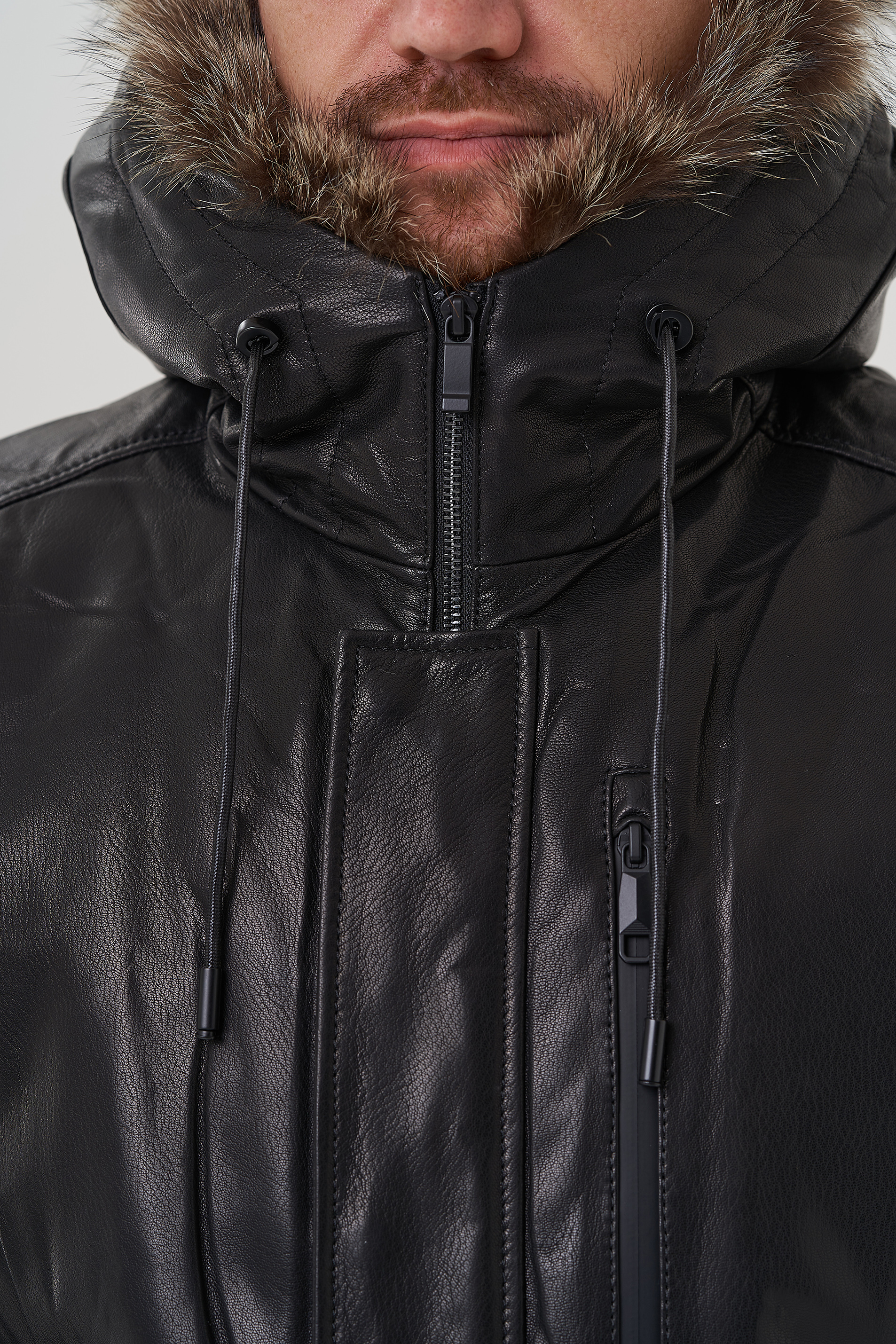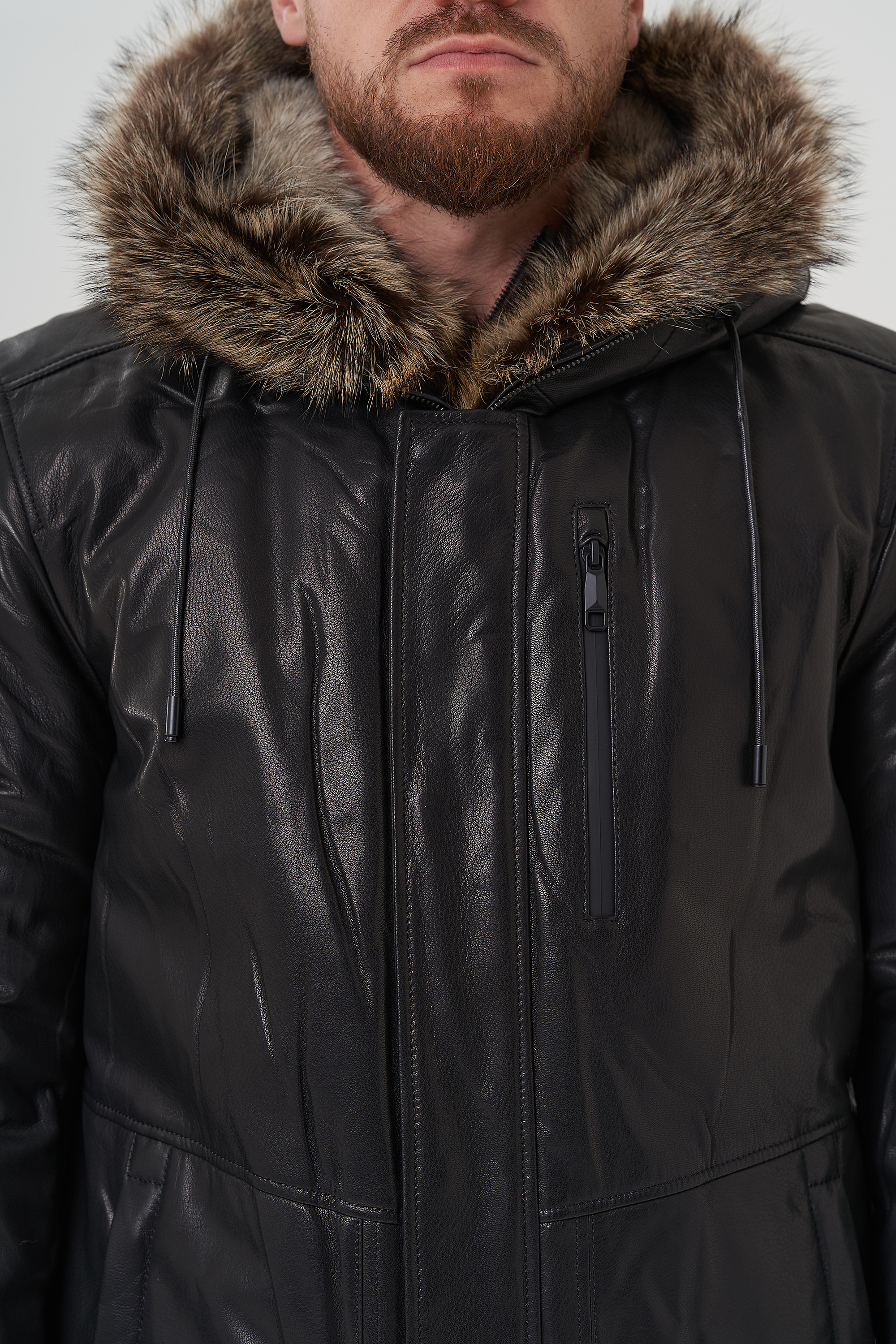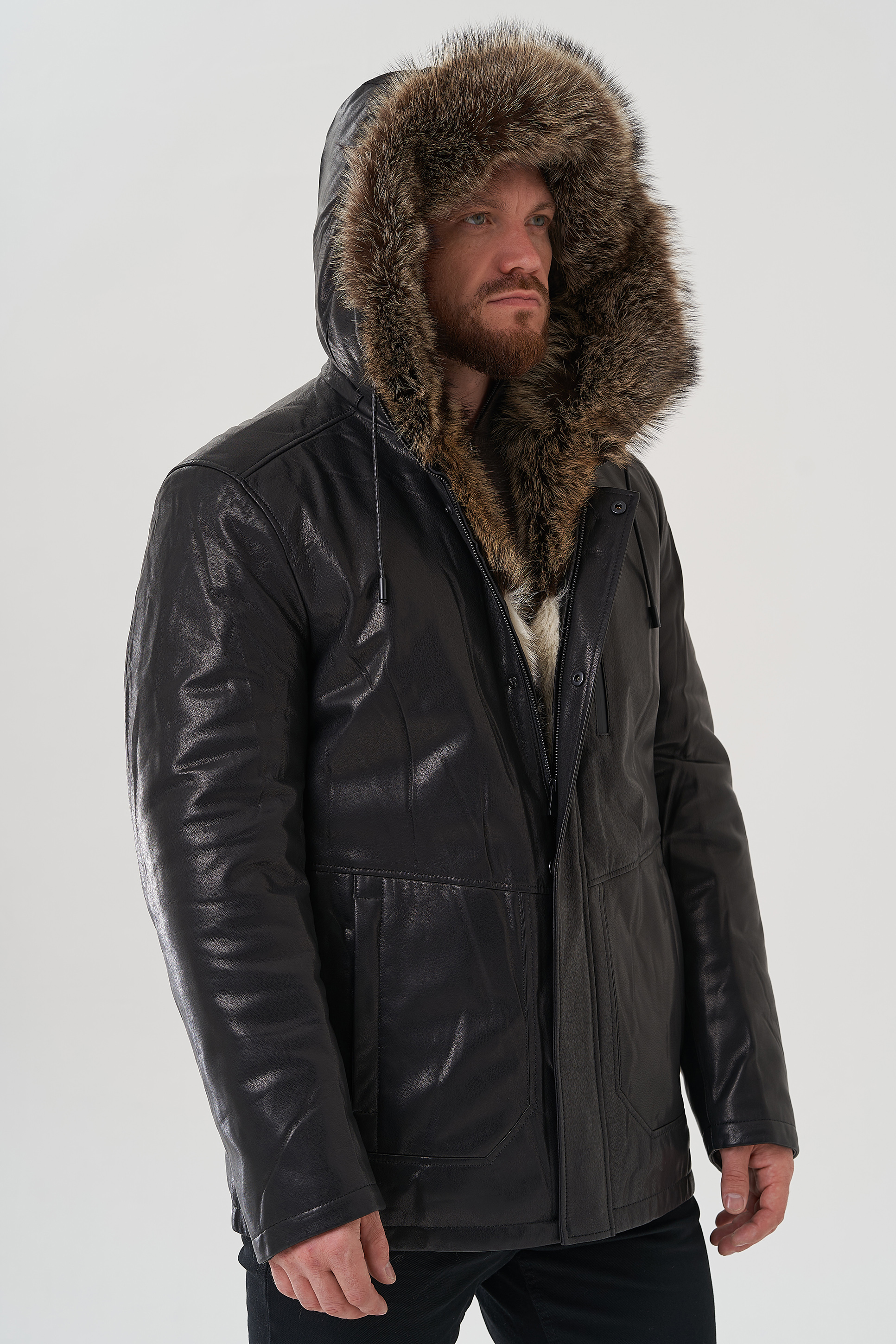 Крой воротника - капюшон, отделка - енот