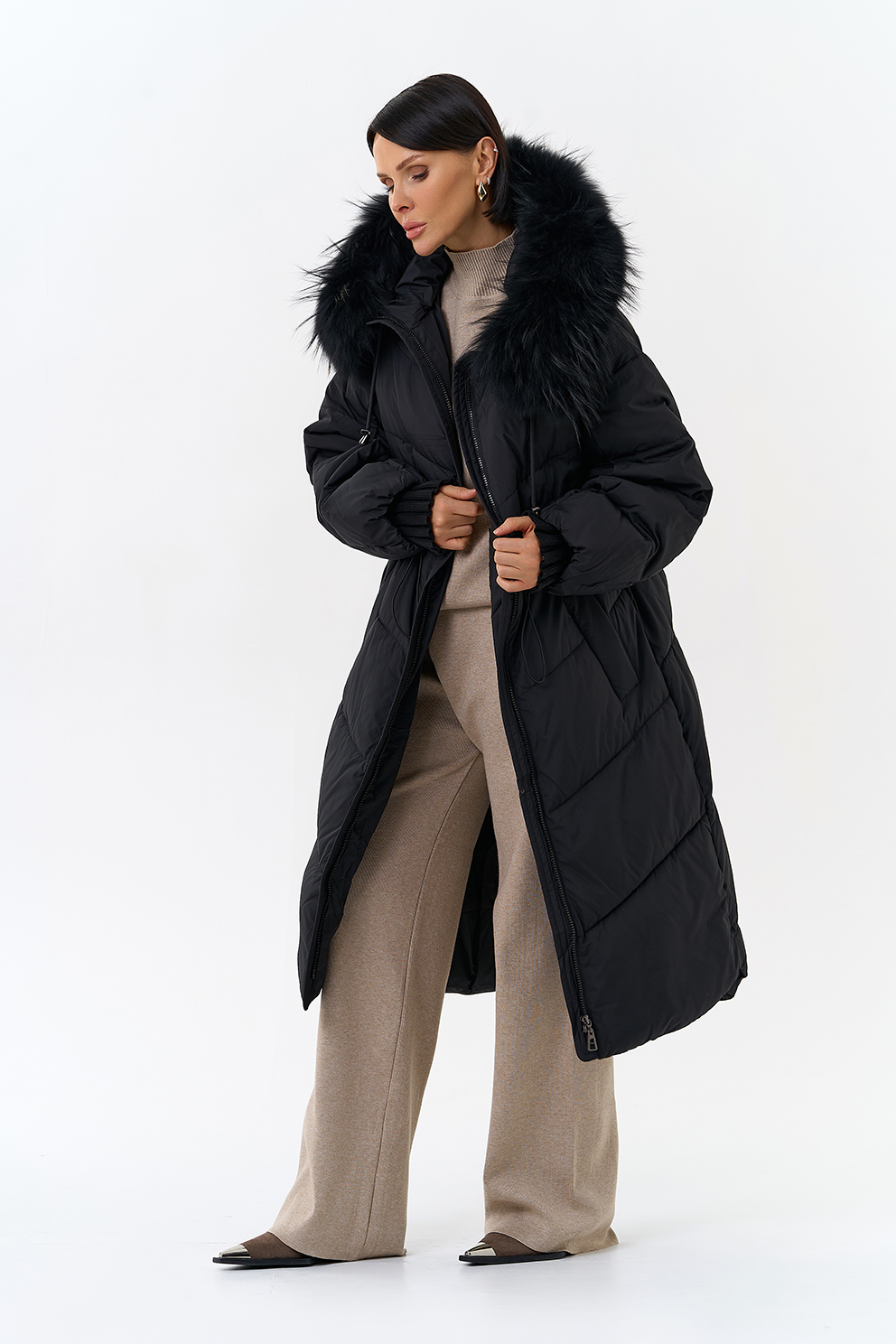 Крой воротника - капюшон, отделка чернобурка