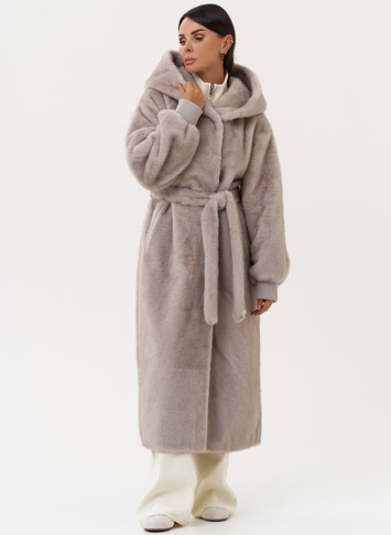 Фасон - прямой Длина изделия - 120 см Цвет - серый Материал - экомех Состав полотна - полиэстер 100% Подкладка - полиэстер 100% Вид застежки - молния, пояс, кулиска на талии Вид ворота - капюшон Фасон рукава - спущенное плечо, длинный |