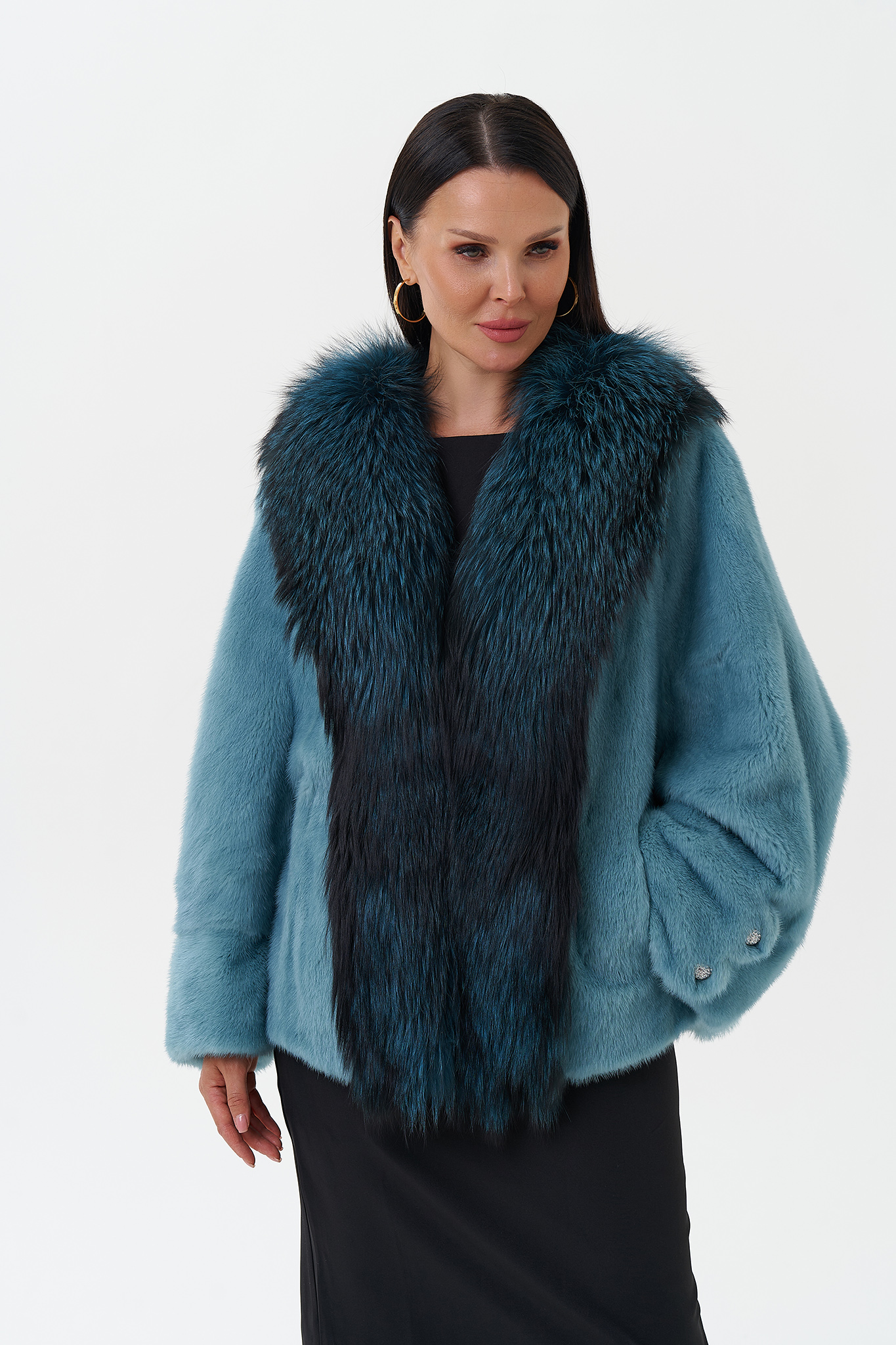 Тип ворота - V - образный воротник , отделка чернобурка